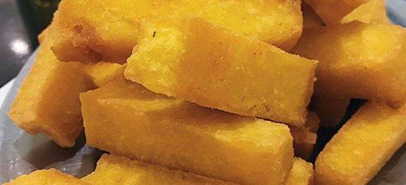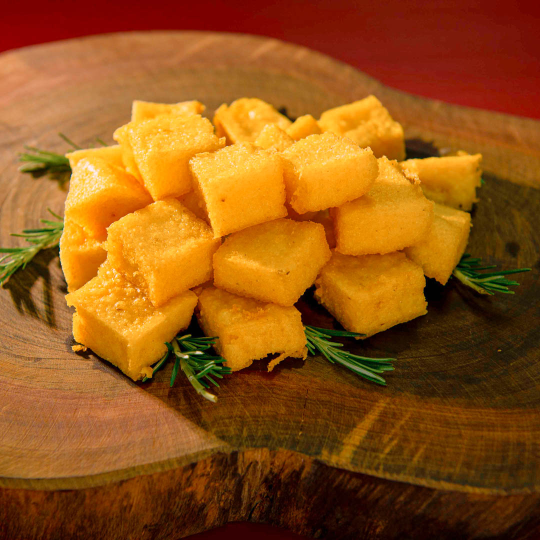 La polenta frita es una receta de origen italiano hecha a base de harina de maíz;